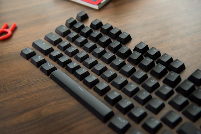 拆键盘起首是拔键帽,这把富勒G87采用了常见的ABS键帽,这种材质多见于背光键盘,通过双色注塑工艺使键帽透光该当是目前最成熟的方案。